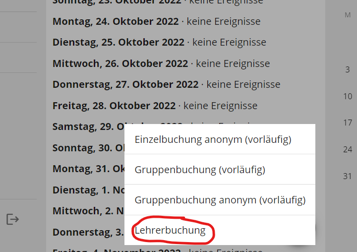 „Lehrerbuchung“. Für Lehrende des ZZT funktionieren auch die Kategorien „Lehrerbuchung